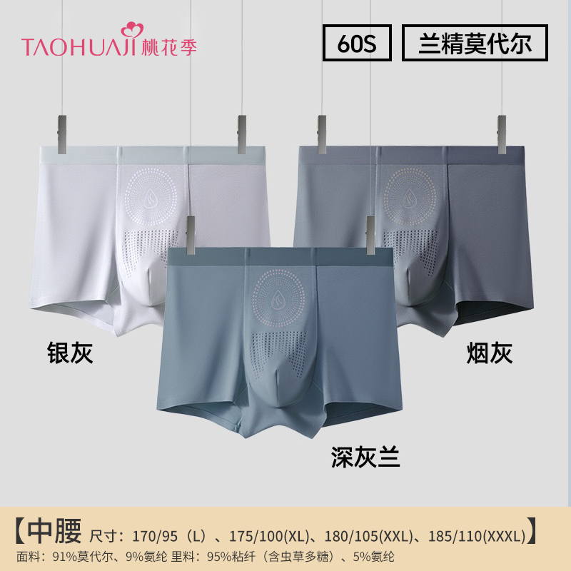 • 商品名称:361005丝光冷染100+按摩颗粒兰精莫代尔无痕虫草素单向导湿男士内裤
