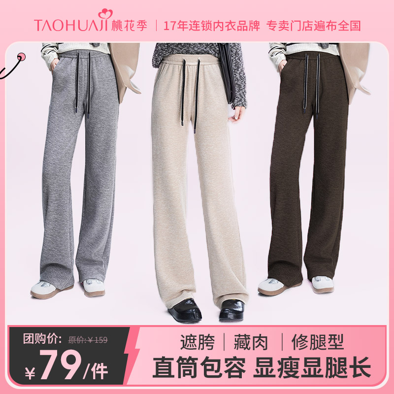 • 商品名称:Z00052秋冬新款松紧腰抽绳窄版直筒裤女 显瘦百搭休闲裤桑蚕丝加羊毛裤子