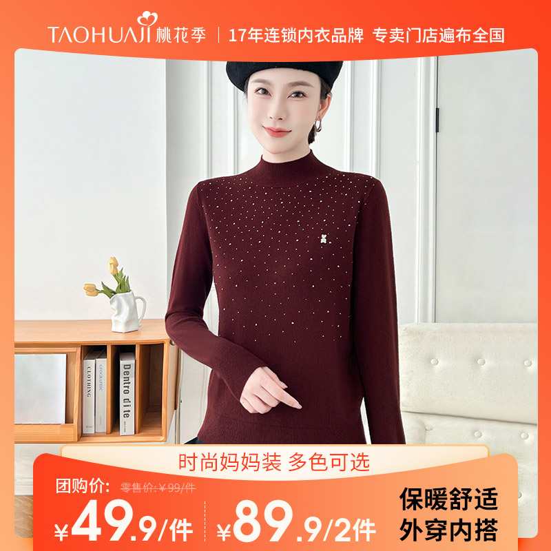 • 商品名称:Z00056镶钻女士羊毛衫 2025秋冬新品中领高弹内搭妈妈针织杉打底毛衣